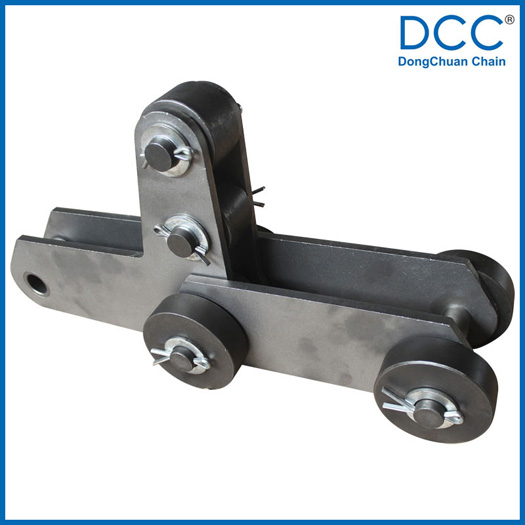 鏈條選用合金鋼材料,對(duì)于有部分需承受較大的載荷的鏈條采用了專用的軸承作為鏈條的轉(zhuǎn)動(dòng)零件。使鏈條的承載力更大,同時(shí)也降低了鏈條的運(yùn)行負(fù)荷